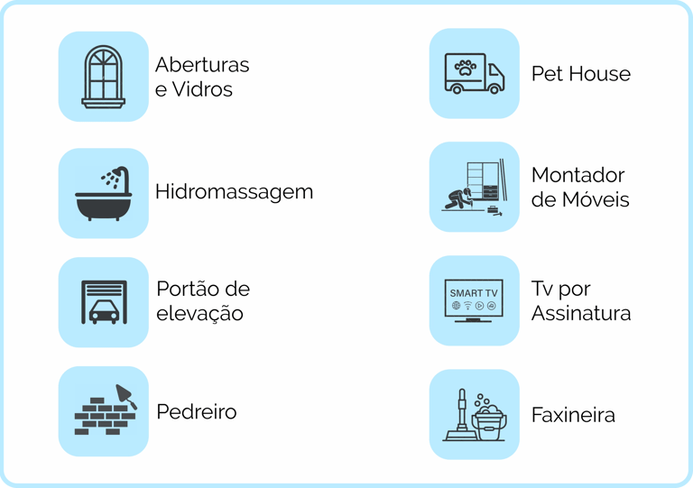 Eletricidade, encanamento, piscina, jardim, eletros, pintura, piso, paisagismo e hidráulica e outros segmentos ,seja qual for a necessidade da sua casa, nós temos a solução certa para você.
